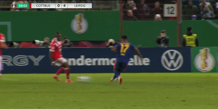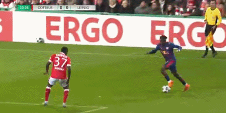 第13分钟,巴卡约科右路内切破门,莱比锡1-0科特布斯