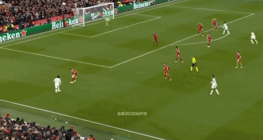 利物浦反击中,布拉德利带球狂奔,制造维尼修斯犯规;